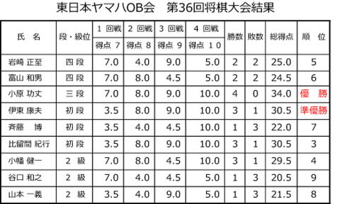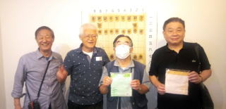 激戦の結果、優勝小原さん、準優勝伊東さん、3位比留間さん、ブービー山本さんとなりました。又、全員に将棋グッズ賞品が贈られました。